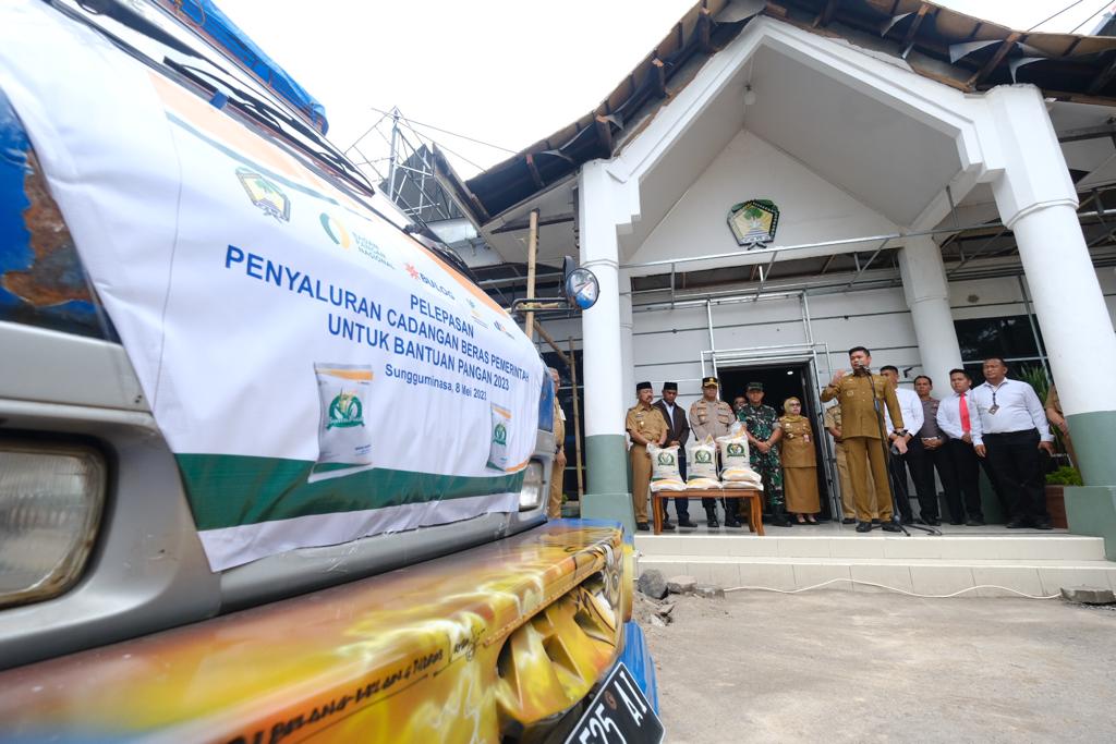 Beras bantuan tersebut pun telah dilepas secara simbolik oleh Bupati Gowa, Adnan Purichta Ichsan pada Pelepasan Penyaluran Cadangan Beras Pemerintah untuk Bantuan Pangan 2023 dari Badan Pangan Nasional. Turut hadir pula Wakil Bupati Gowa Abd Rauf Malaganni, Sekretaris Daerah Kabupaten Gowa Kamsina, dan Forkopimda Kabupaten Gowa.