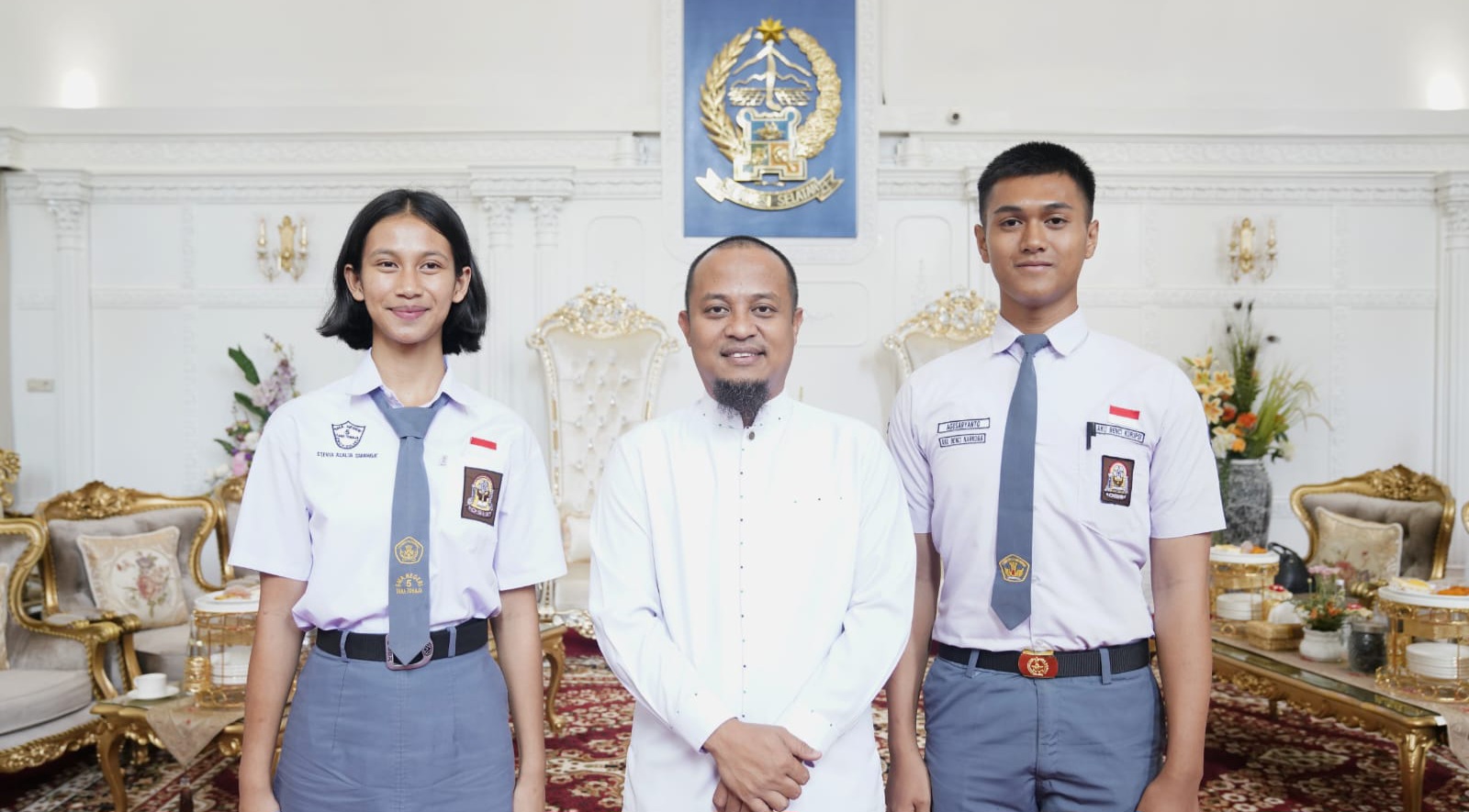 REPUBLIKNEWS.CO.ID, MAKASSAR — Gubernur Sulawesi Selatan Andi Sudirman Sulaiman, menerima dua pelajar terpilih menjadi calon Pasukan Pengibar Bendera Pusaka (Paskibraka) mewakili Provinsi Sulsel tingkat nasional di Rujab Gubernur, Jumat (14/07/2023).