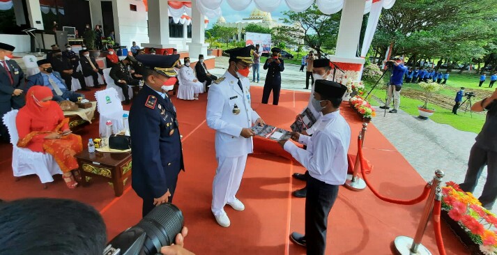 Penyerahan SK remisi ini dilakukan secara simbolis oleh Bupati Andi Seto Asapa kepada perwakilan warga binaan Rutan Sinjai usai pelaksanaan Upacara HUT RI Ke 76 di Halaman Kantor Bupati Sinjai, Selasa (17/08/2021).
