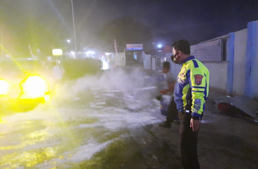 “Petugas menaburkan pasir pada cairan yang tumpah,” tututnya.