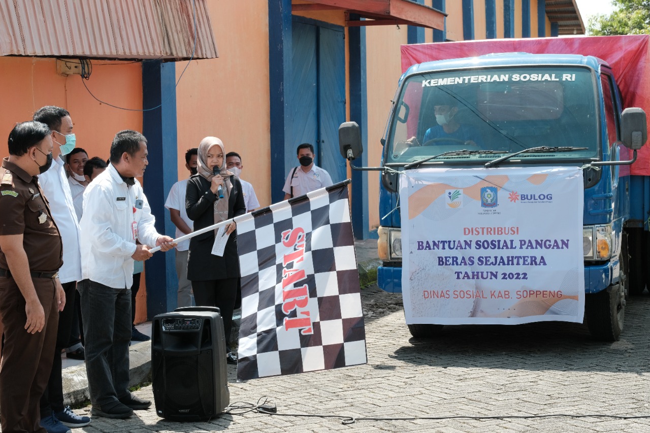 Kepala Dinas Sosial Kabupaten Soppeng, Suriasni, dalam laporannya menyampaikan bahwa distribusi Bansos pangan beras sejahtera sebagai percepatan penanggulangan kemiskinan dan untuk mengurangi beban pengeluaran masyarakat miskin khususnya di Kabupaten Soppeng.