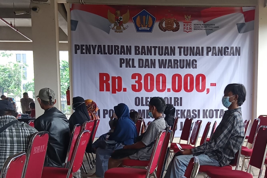 Kasie Humas Polres Metro Bekasi Kota Kompol Erna mengatakan, mulai hari ini Polres Metro Bekasi Kota menyalurkan bantuan tunai pangan pedagang kaki lima dan Warung ( BTPKLW ) sebanyak 15.000 pelaku usaha kecil yang direncanakan selama 3 hari.