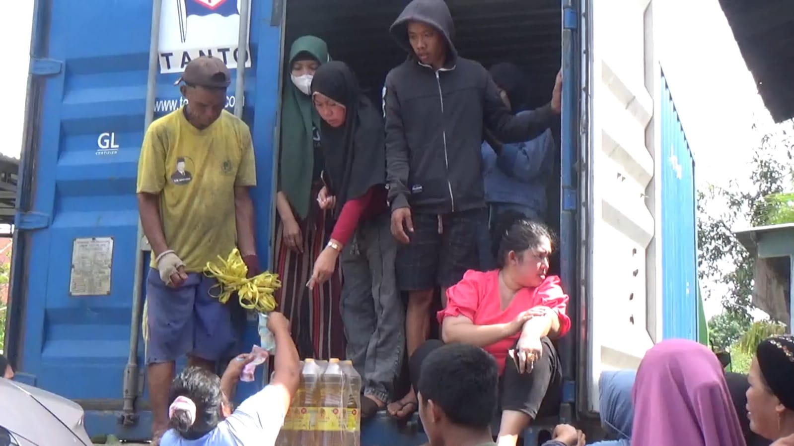 Sejak pukul 11:00 WITA warga mulai berdatangan dan berebut untuk mendapatkan minyak goreng murah ini.