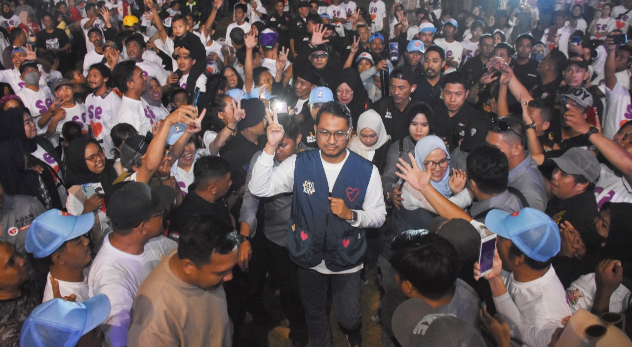 “Terima kasih sebesar-besarnya sudah hadir, atas nama pasangan Sehati, mengapresiasi sebesar-besarnya kepada relawan, dengan jumlah luar biasa buat saya. Saya ingat ketika kami berdua baru pertama deklarasi, saat itu banyak yang mempertanyakan, tetapi sering waktu berjalan saya bersama ibu Rezki, saya selalu ditemani relawan ini di 15 kecamatan dan 153 kelurahan,” ungkapnya.