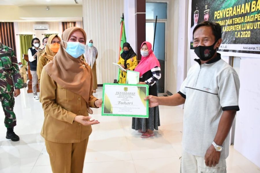 REPUBLIKNEWS.CO.ID,MASAMBA — Bupati Luwu Utara, Indah Putri Indriani (IDP), menyerahkan secara simbolis bantuan tenda dan gerobak kepada 245 pelaku UMKM di Kabupaten Luwu Utara. Senin (11/1/2021).