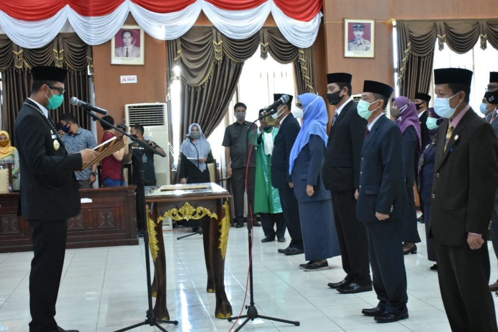 Pelantikan dan pengambilan sumpah jabatan tersebut dilangsungkan di Ruang Pola Kantor Bupati Sinjai, disaksikan Wabup Sinjai Hj Andi Kartini Ottong,