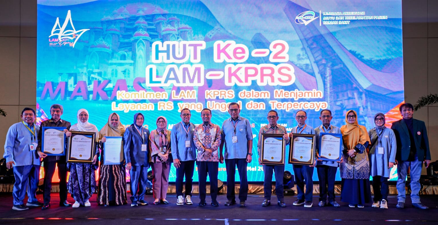 Sertifikat Akreditasi Rumah Sakit itu diserahkan acara 2 Tahun Lembaga Akreditasi Mutu Dan Keselamatan Pasien Rumah Sakit (LAM-KPRS) di Hotel Claro, Makassar, Sabtu (27/05/2023).