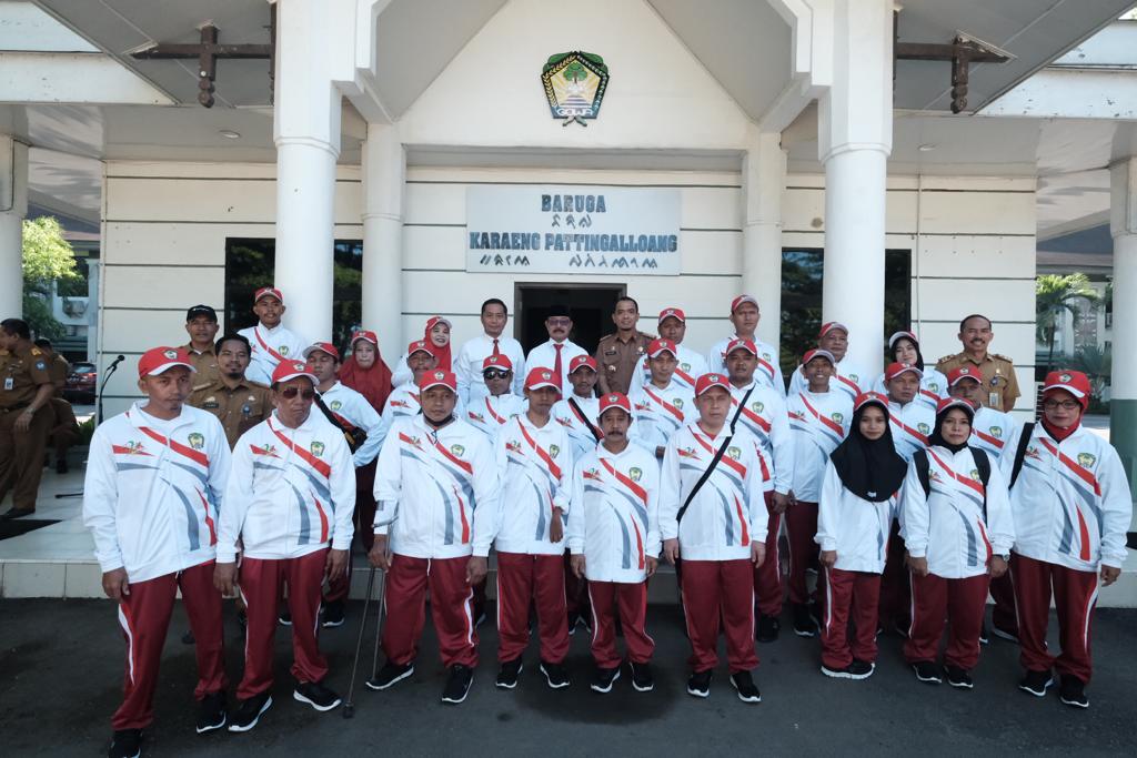 Para atlet paralympic atau atlet National Paralympic Commitee Indonesia (NCP) ini dilepas secara resmi oleh Wakil Bupati Gowa Abd Rauf Malaganni usai pelaksanaan upacara bendera, di Halaman Kantor Bupati Gowa.
