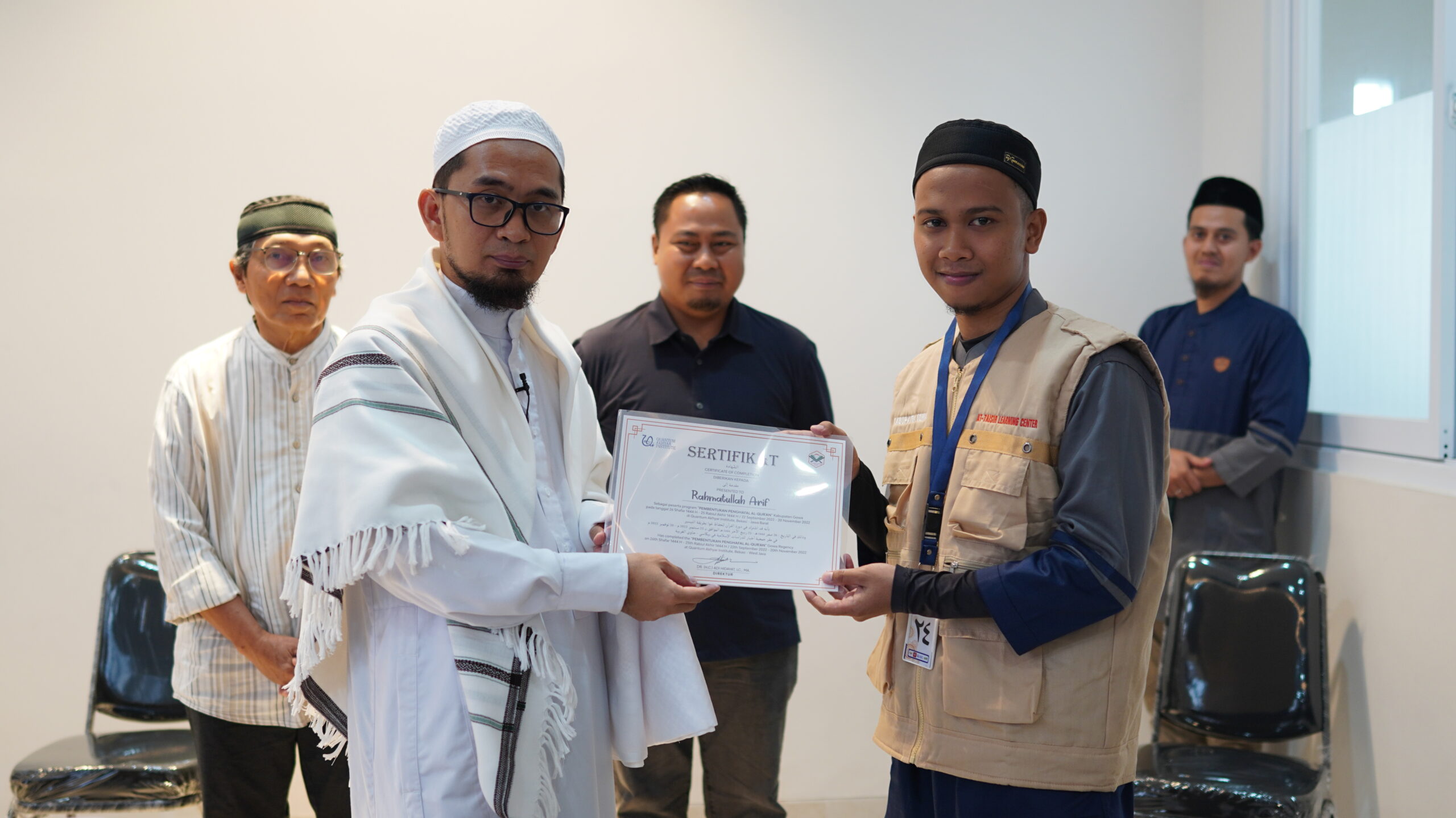 Lanjutnya, para imam tersebut dinyatakan telah menyelesaikan seluruh kegiatan pembinaan setelah dilakukan Penutupan Program Peningkatan Kompetensi Imam Gelombang II Pemerintah Kabupaten Gowa Tahun 2022 Kerjasama At-Taisir Learning Centre Quantum Akhyar Institute Bekasi, di Jawa Barat pada 19 November 2022 lalu.