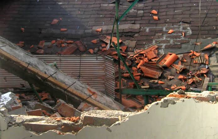 Empat orang menjadi korban akibat tertimpa runtuhan bangunan.