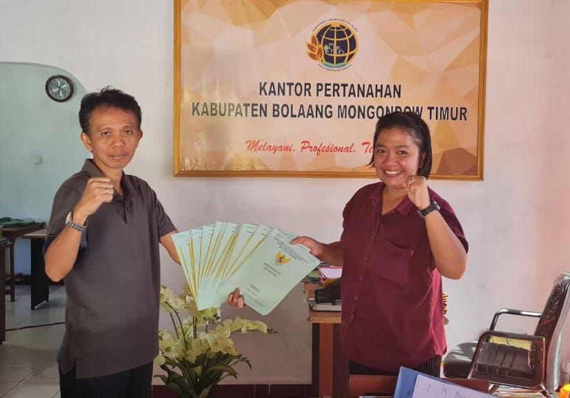 “Saat ini sudah terbit 27 sertifikat dari target 34 sertifikat untuk Kota Bitung dan 16 sertifikat dari target 28 sertifikat untuk Kabupaten Boltim. Artinya progres sertifikasi sudah melebihi 50 persen di 2022 untuk masing-masing kota dan kabupaten tersebut.” ujarnya