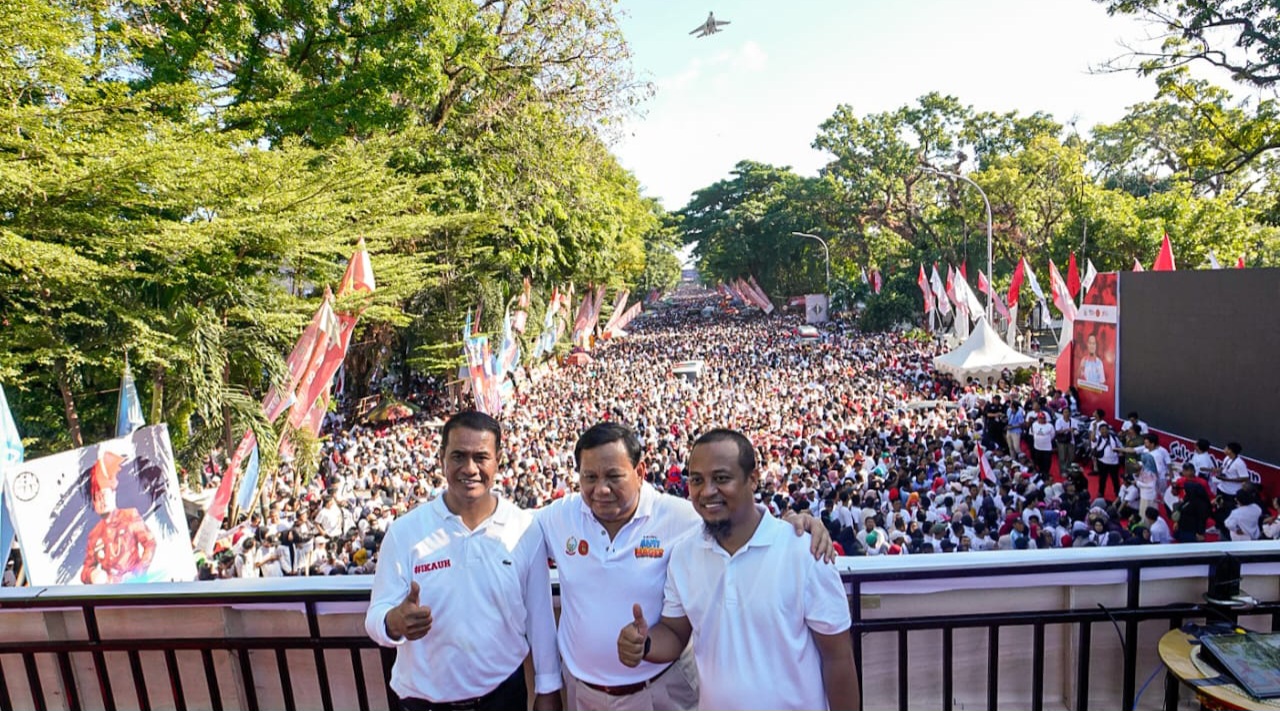 Sementara itu, Prabowo mengapresiasi semangat peserta, “Selamat pagi, Sulawesi Selatan luar biasa! Saya ingin menyampaikan terima kasih sebesar-besarnya atas undangan ini,” sebutnya.