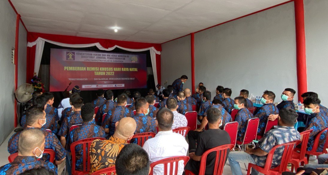 REPUBLIKNEWS.CO.ID, SAMARINDA — Sebnayak 46 warga binaan beragama Nasrani di Lapas Kelas II A Samarinda mendapatkan remisi khusus natal 2022. Pemberian remisi langsung di serahkan Kepala Lapas Narkotika, Hidayat, pada Minggu pagi (25/12/2022) bersama dengan perayaan Natal.