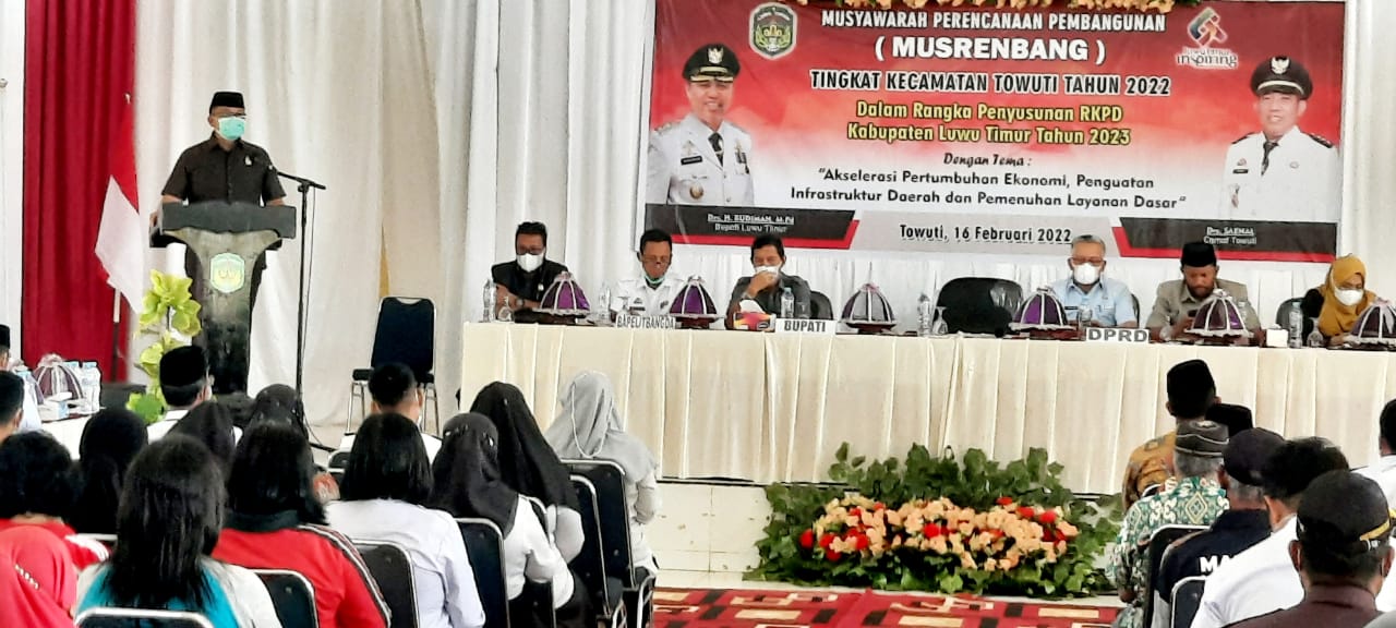 REPUBLIKNEWS.CO.ID, LUWU TIMUR- Pemerintah Kecamatan Towuti bersama seluruh jajaran pemerintah desa menggelar rapat dalam Musyawarah Rencana Pembangunan (Musrenbang) RKPD tahun 2023 yang berlangsung di Gedung Serbaguna Towuti, Rabu (16/2/2022).