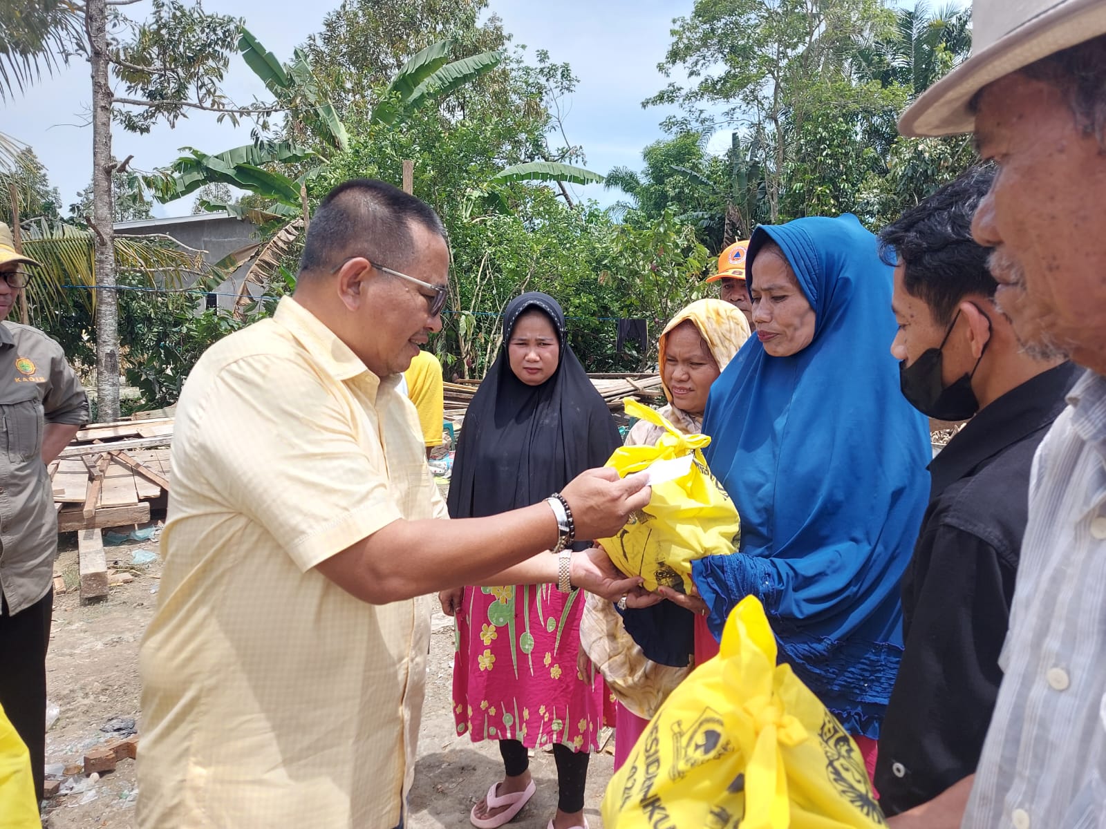 Selain melihat langsung kondisi korban, Muhammad Fauzi juga meberikan bantuan berupa sembako dan uang tunai kepada 105 korban di dua desa tersebut.