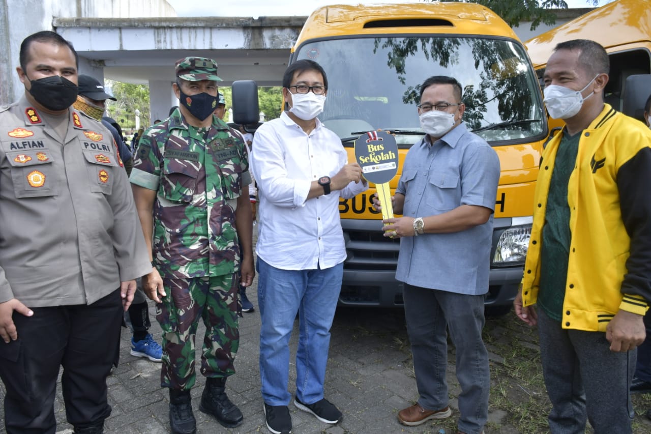 REPUBLIKNEWS.CO.ID,MASAMBA — Anggota Komisi V DPR RI Muhammad Fauzi menyerahkan dua unit bus sekolah dan satu unit Ekskavator ke pemerintah Kabupaten Luwu Utara. Bus dan Excavator tersebut diterima langsung Wakil Bupati Luwu Utara, Suaib Mansur. Jumat (25/02/2022)