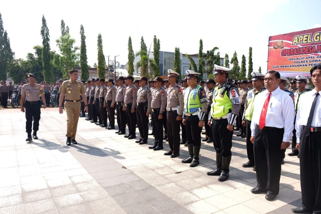 REPUBLIKNEWS.CO.ID, GOWA – Dalam rangka pemilihan calon kepala desa yang diselenggarakan di 69 desa se Kabupaten Gowa pada 27 Oktober mendatang, Polres Gowa menggelar Apel Gelar Pasukan Operasi Desa Praja 2018 dengan tema “Melalui Apel Gelar Pasukan Desa Praja 2018, Polres Gowa beserta Instansi terkait Siap mengamankan Pemilihan Kepala Desa Serentak Tahun 2018 Kabupaten Gowa, di Pelataran Museum Ballalompoa, Selasa (16/10/2018).