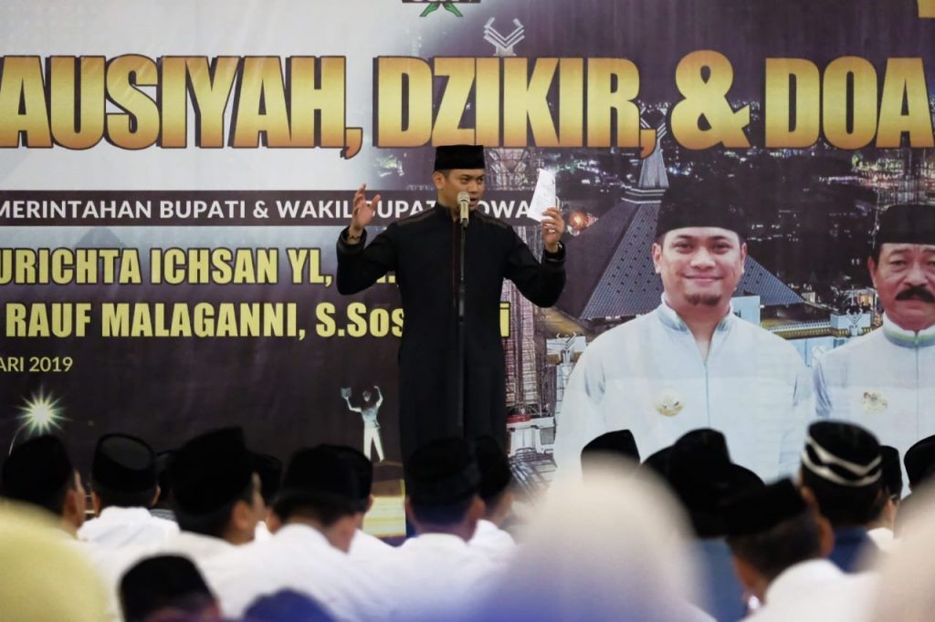 REPUBLIKNEWS.CO.ID, GOWA — Bupati Gowa, Adnan Purichta Ichsan, memaparkan sejumlah program prioritas pemerintah Kabupaten Gowa tahun 2019 di acara dzikir, tausiyah dan doa bersama yang berlangsung di Masjid Agung Syekh Yusuf, Minggu (17/02/2019) malam kemarin.