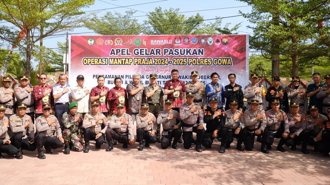Sementara, Kapolres Gowa AKBP RTS Simanjuntak mengatakan, Polri khususnya Polres Gowa menggelar Operasi Mantap Praja 2024-2025 ini bertujuan untuk mengawal dan mengamankan jalannya Pilkada mulai dari tahapan perencanaan, sampai dengan selesainya seluruh tahapan Pilkada 2024-2025.