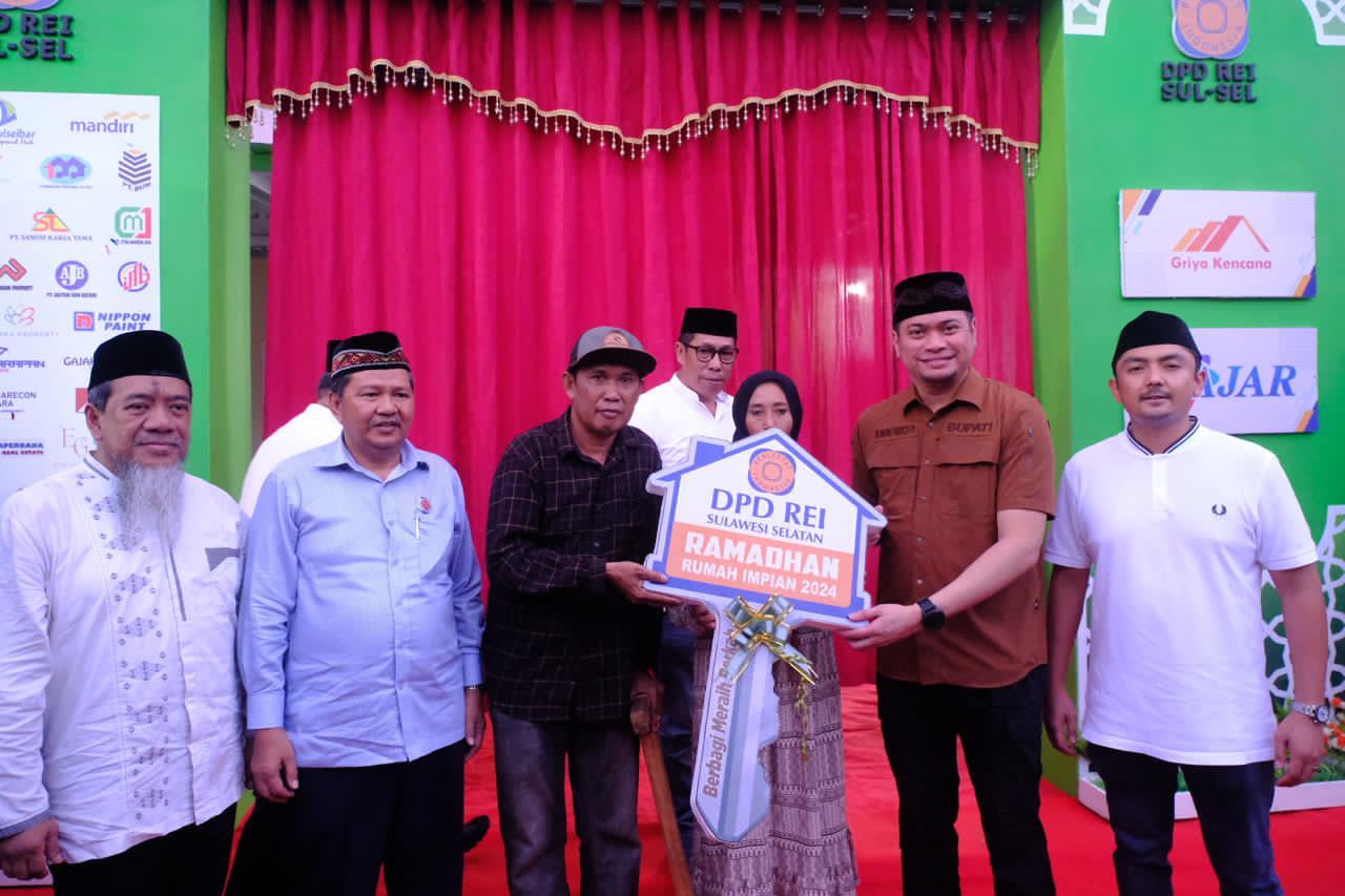 REPUBLIKNEWS.CO.ID, GOWA — Bupati Gowa, Adnan Purichta Ichsan hadir langsung menyerahkan bantuan rumah gratis secara simbolis kepada Halid Dg. Lewa. Penyerahan rumah gratis tersebut merupakan Pogram Ramadhan Rumah Impian 2024 yang diselenggarakan oleh DPD REI Sulawesi Selatan.