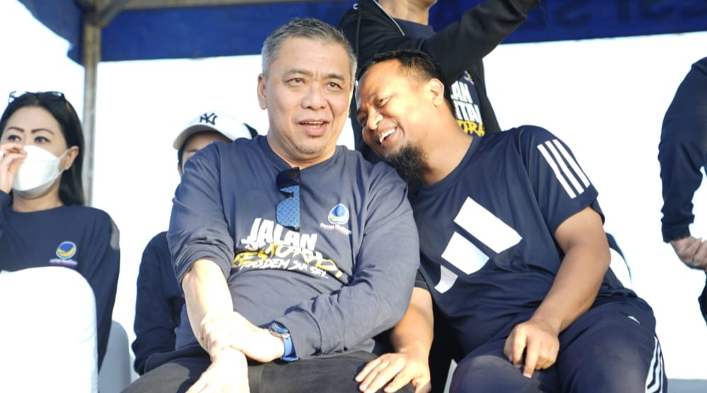 Andi Sudirman pun tampak akrab berbincang bersama Wakil Ketua Umum DPP Partai NasDem, Ahmad Ali saat berjalan sesuai rute jalan sehat ini.