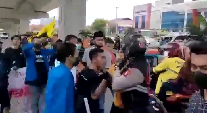 REPUBLIKNEWS.CO.ID, MAKASSAR – Aksi demonstrasi yang dilakukan sekelompok mahasiswa berujung ricuh dengan aparat Kepolisian di depan Kantor DPRD Kota Makassar, Senin (07/03/2022).