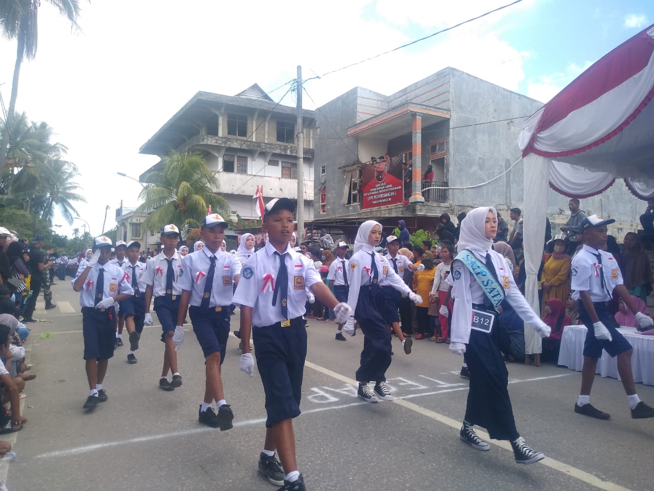 Kegiatan lomba gerak jalan indah (GJI) tingkat pelajar antar SD, SMP, dan SMA se Pulau Wangiwangi, Kabupaten Wakatobi, Sulawesi tenggara (Sultra) pada Minggu (14/8/2022) di perayaan HUT RI- Ke 77 tahun 2022, berlangsung ceriah.
