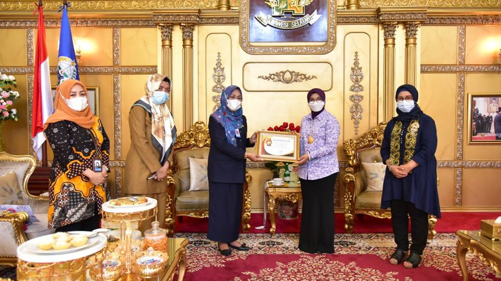 REPUBLIKNEWS.CO.ID, MAKASSAR — Kepala Perwakilan BKKBN Sulsel Andi Rita Mariani, menyerahkan piagam penghargaan kepada istri Gubernur sulsel Lies F Nurdin yang juga Ketua Tim Penggerak PKK Sulsel atas partisipasinya dalam kegiatan pelayanan KB serentak sejuta akseptor di Rujab Gubernur, Selasa (16/02/2021).