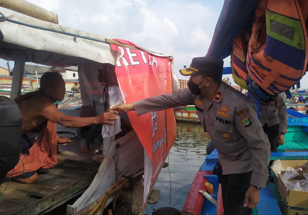 Momen baik ini digunakan oleh Personel Polsek Kawasan Kali Baru untuk berbagi kepada sesama warga Nelayan di kawasan Pelabuhan Kali Baru, Selasa (19/4/2022)