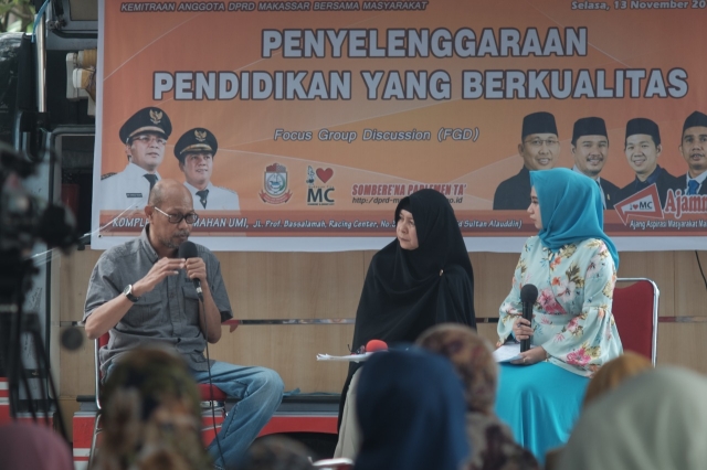 Hadir sebagai narasumber, anggota Pansus Ranperda Pendidikan Amar Busthamal, Plt Kadis Pendidikan Kota Makassar Muhammad Hasbi, dan tenaga pendidik Perguruan Islam Datumuseng Nina Marlina.