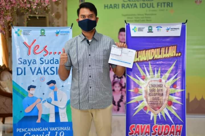 “Setelah beberapa kali rencana vaksin karena ada hal yang menyebabkan tidak diperbolehkan vaksin. Alhamdulillah hari ini setelah screening saya diperbolehkan melakukan vaksin. dan ini adalah vaksin pertama yang saya lakukan”, ucapnya.