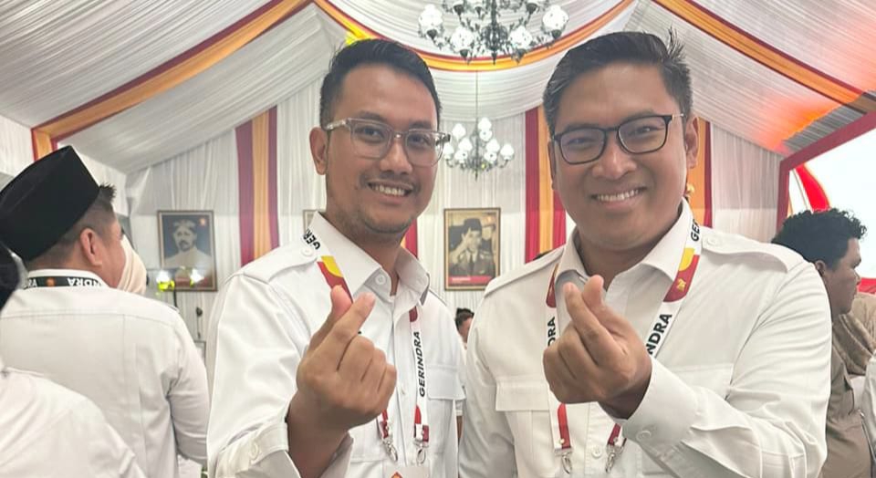 Tak ketinggalan juga, Ketua DPD Gerindra Kalimantan Timur, Budisatrio Djiwandono bersama Ketua DPD Gerindra Sulsel, Andi Iwan Darmawan Aras. Mereka memperagakan salam yang punya filosofi menebar energi positif tersebut.