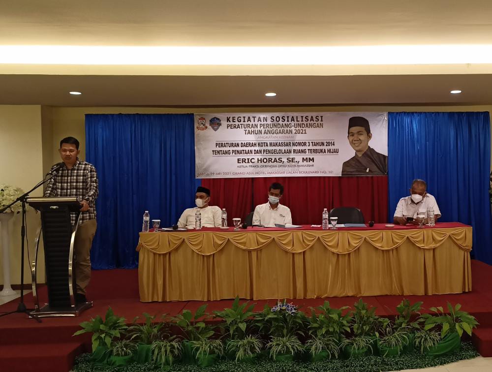 REPUBLIKNEWS.CO.ID, MAKASSAR – Anggota DPRD Kota Makassar, Eric Horas menggelar kegiatan sosialisasi Peraturan Daerah (Perda) Kota Makassar Nomor 3 tahun 2014 tentang penataan dan pengelolaan Ruang Terbuka Hijau (RTH). Kegiatan tersebut dihelat di Hotel Grand Asia, Jalan Boulevard, Makassar, Sabtu (29/05/2021).