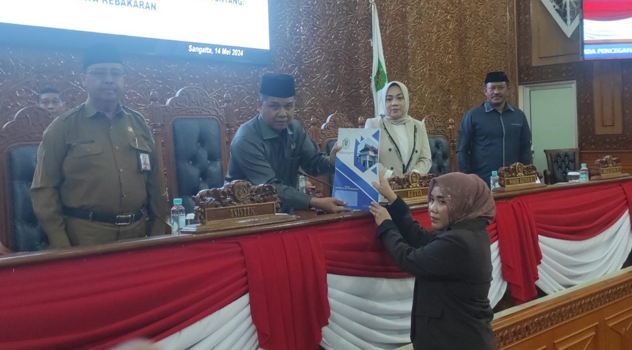 REPUBLIKNEWS.CO.ID, KUTAI TIMUR – Anggota DPRD Kutai Timur (Kutim), sekaligus perwakilan dari Fraksi Amanat Keadilan Berkarya (AKB), Leni Anggraini, menyampaikan Pandangan Umum (PU) terhadap Rancangan Peraturan Daerah (Raperda) tentang Ketertiban Umum dalam sidang paripurna ke-23. PU tersebut dibacakan dihadapan Ketua DPRD Kutim Joni, Wakil Ketua l DPRD Kutim Asti Mazar Bulang, Wakil Ketua ll DPRD Kutim Arfan, Unsur Forkopimda beserta tamu undangan lainnya, di Ruang Sidang Utama DPRD Kutim, Selasa (14/5/2024).