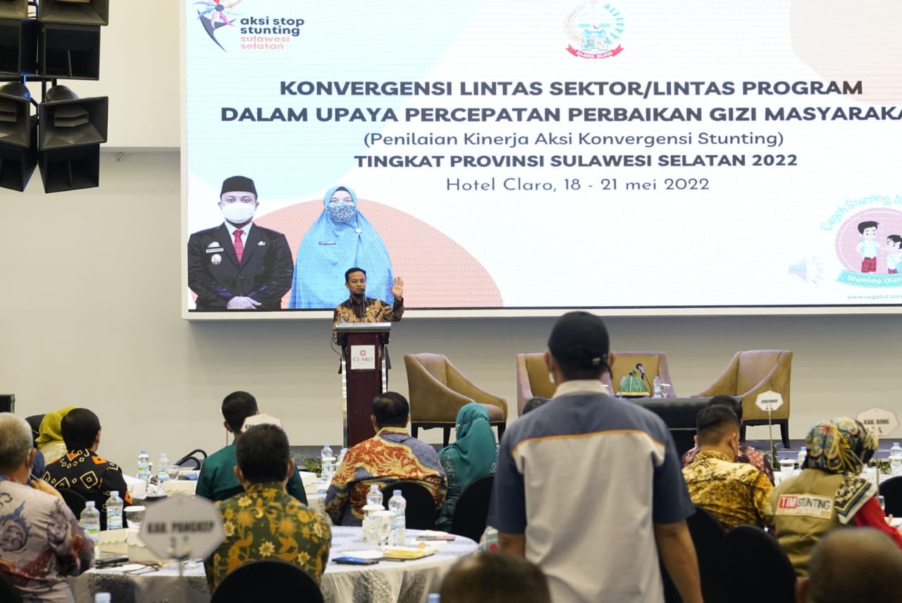 REPUBLIKNEWS.CO.ID, MAKASSAR — Gubernur Sulawesi Selatan, Andi Sudirman Sulaiman menghadiri dan membuka acara Konvergensi Lintas Sektor/Lintas Program Dalam Upaya Percepatan Perbaikan Gizi Masyarakat (Penilaian Kinerja Aksi Konvergensi Stunting) Tingkat Provinsi Sulawesi Selatan 2022 di Hotel Claro, Makassar, Kamis (19/05/2022).
