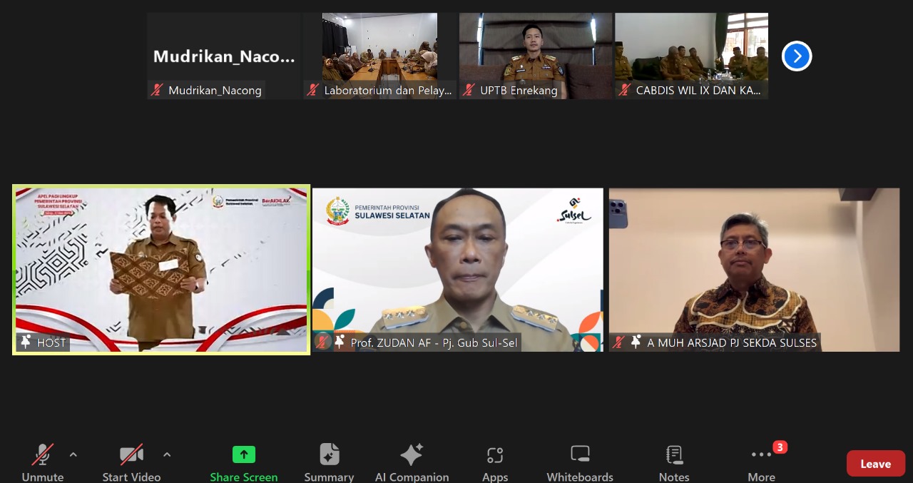 REPUBLIKNEWS.CO.ID, MAKASSAR — Apel pagi secara virtual dilaksanakan secara rutin setiap hari Senin di masa kepemimpinan Penjabat Gubernur Sulawesi Selatan, Prof Zudan Arif Fakrulloh, yang diikuti oleh seluruh OPD Lingkup Sulsel.