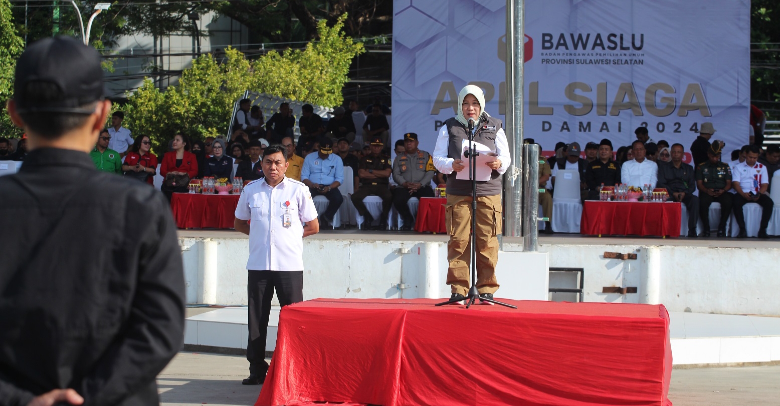Apel siaga ini dipimpin langsung oleh Ketua Bawaslu Sulsel, Mardiana Rusli. Ia memberikan pengarahan kepada seribuan jajaran pengawas di semua level yang tersebar di seluruh wilayah Provinsi Sulawesi Selatan.