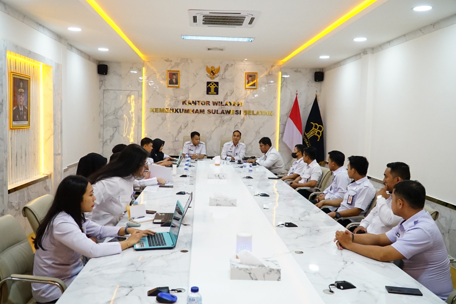 Dalam kunjungannya mereka diterima langsung Kasubag Kepegawaian Kanwil Kemenkumham Sulsel Andi Rahmat.
