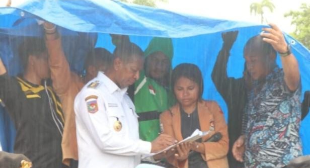 REPUBLIKNEWS.CO.ID, MERAUKE — Derasnya hujan yang mengguyur Kota Merauke, Selasa (16/1/2024), tak menyurutkan niat anak-anak mahasiswa Universitas Negeri Musamus untuk menyampaikan aspirasi dan keluhan masyarakat kepada Pj. Gubernur Papua Selatan, Apolo Safanpo di Gedung Negara Jl. Trikora Merauke.