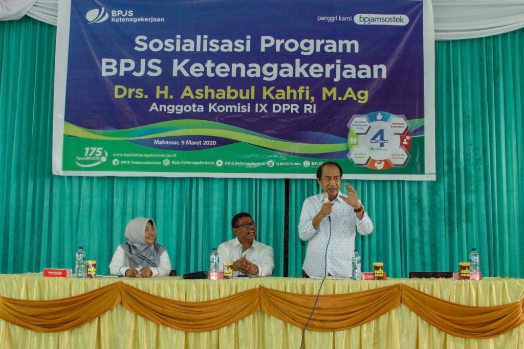 REPUBLIKNEWS.CO.ID, MAKASSAR — Anggota Komisi IX DPR RI Ashabul Kahfi, menjadi pembicara dalam Sosialiasi yang digelar oleh Badan Penyelenggara Jaminan Sosial Ketenaga Kerjaan (BPJamsostek), di Aula SMK Negeri 5 Makassar, Senin (08/03/2020) kemarin.