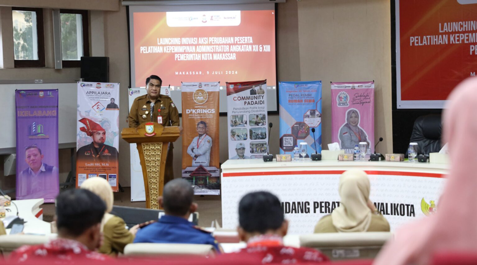 REPUBLIKNEWS.CO.ID, MAKASSAR – Asisten III Bidang Administrasi Umum Kota Makassar, Andi Irwan Bangsawan resmi me-launching 18 project inovasi Aksi Perubahan Pelatihan Kepemimpinan Administrator (PKA) Angkatan XII dan XIII di Ruang Sipakalebbi, Balaikota Makassar, Selasa (9/7/2024).