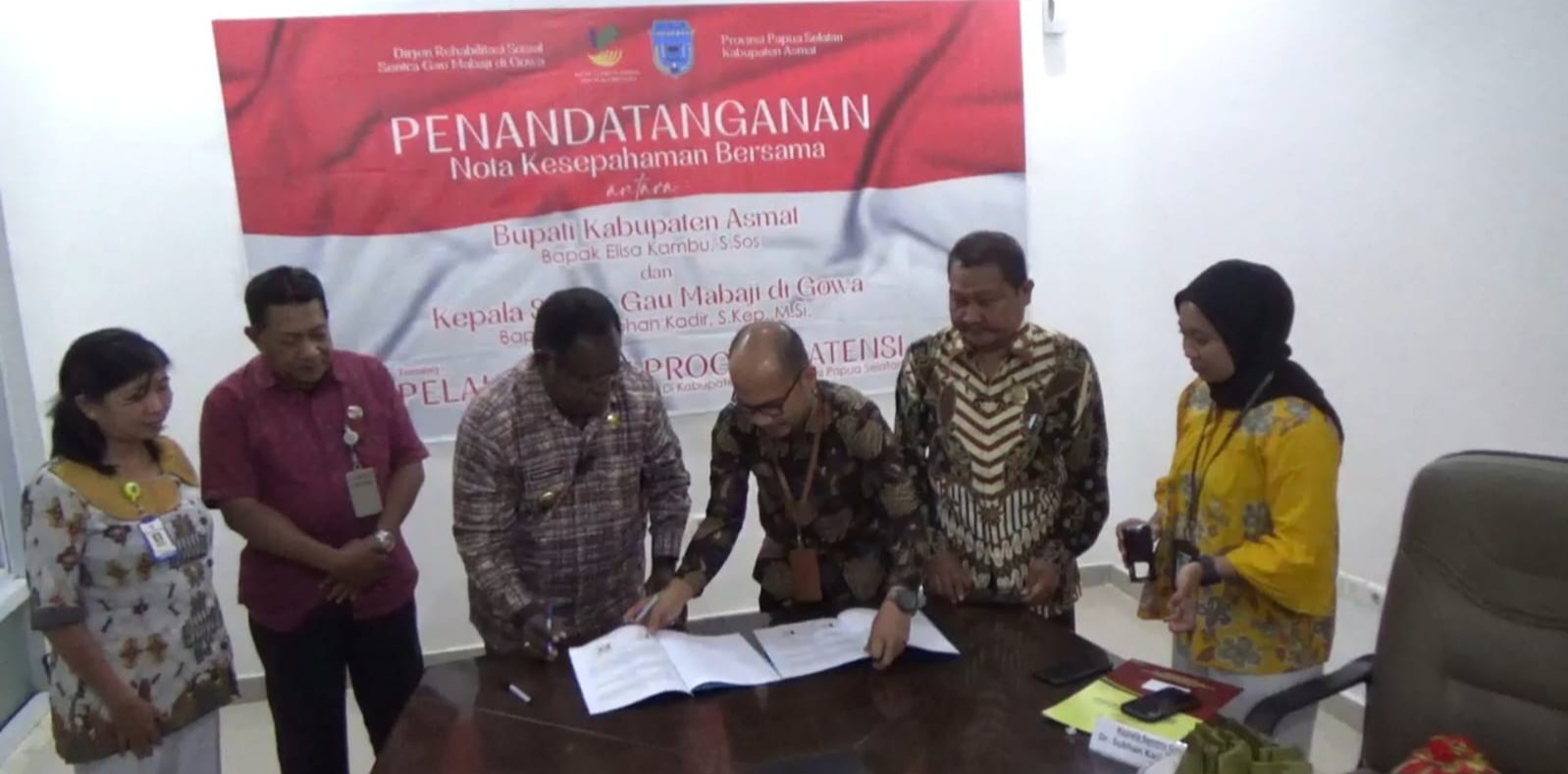 REPUBLIKNEWS.CO.ID, GOWA — Bupati Asmat, Provinsi Papua Selatan, Elisa Kambu bersama Kepala Sentra Gau Mabaji Kabupaten Gowa Sulawesi Selatan, Dr. Subhan Kadir melakukan Penandatanganan Nota Kesepahaman (MoU) terkait program Asistensi Rehabilitasi Sosial (Atensi).