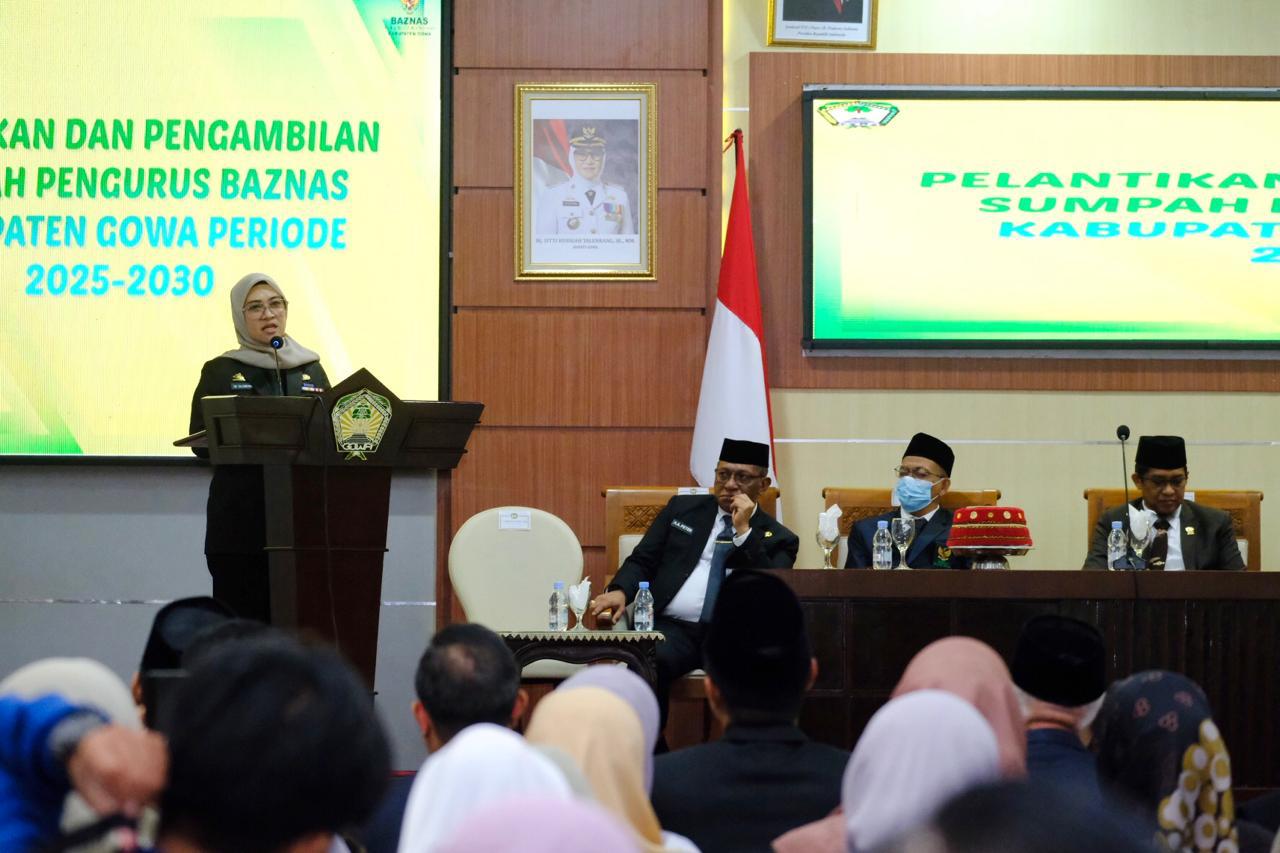 “Kami mengajak semua bisa berbuat baik, khususnya ASN dengan mengeluarkan zakatnya 2,5 persen dan akan disalurkan melalui Baznas. Kami sudah buat regulasinya dengan mengeluarkan SK Bupati,” terang Bupati Gowa, Sitti Husniah Talenrang, usai melantik Ketua dan Pengurus Baznas Kabupaten Gowa Periode 2025-2030, di Baruga Karaeng Galesong, Kantor Bupati Gowa, Senin (30/06/2026).