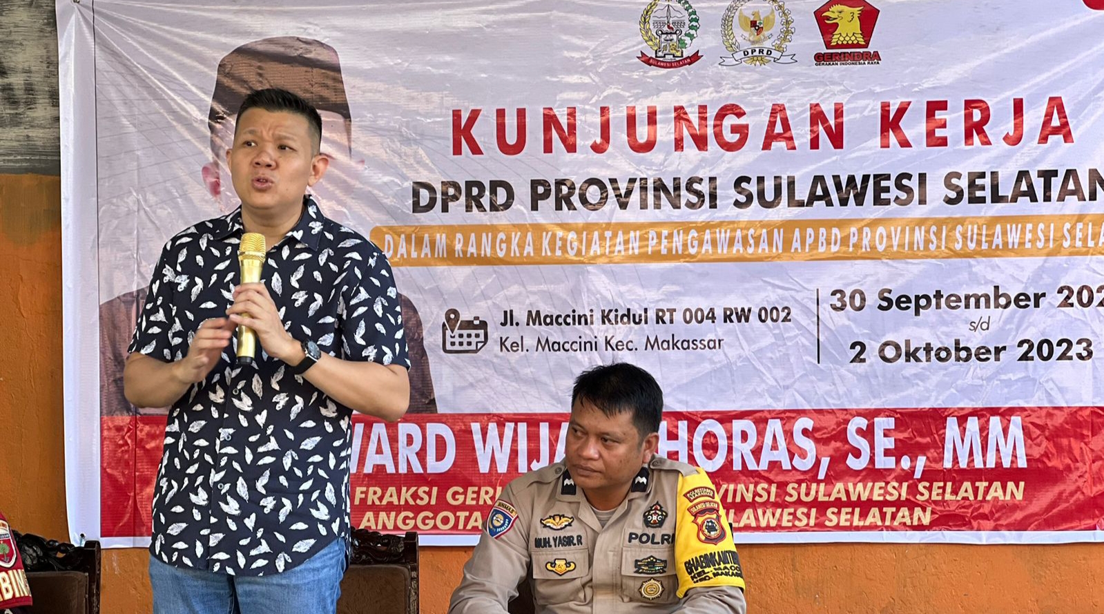 Edward Horas menemui warga Kelurahan Maccini, Kecamatan Makassar, Kota Makassar, Minggu (1/10/2023). Anggota Komisi A DPRD Sulsel itu berdialog langsung dengan warga dalam sebuah forum.