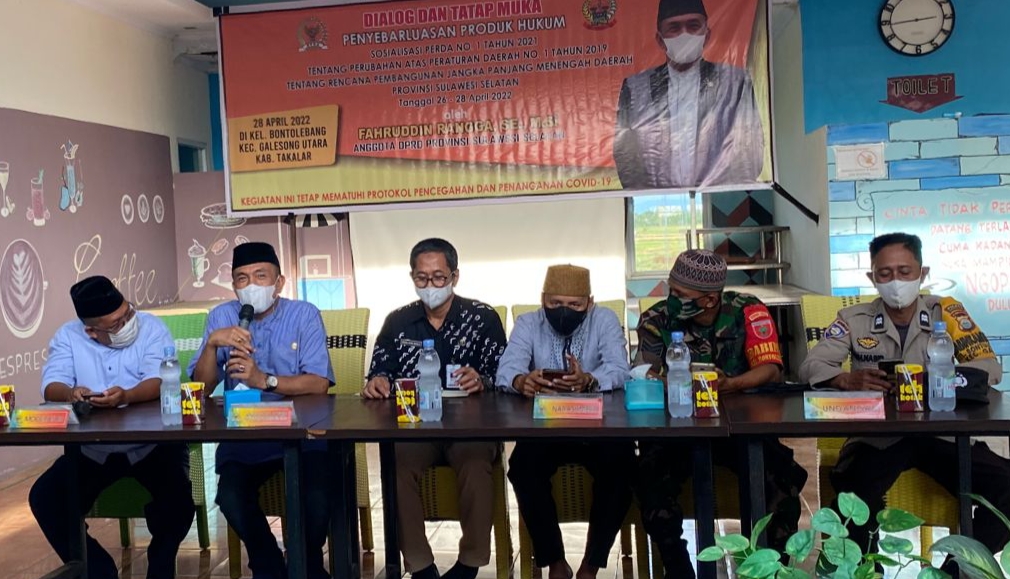 REPUBLIKNEWS.CO.ID, TAKALAR – Anggota DPRD Sulawesi Selatan, Fahruddin Rangga kembali menggelar penyebarluasan produk hukum daerah di Kelurahan Bontolebang, Kecamatan Galesong Utara, Kabupaten Takalar, Kamis (28/4/2022).