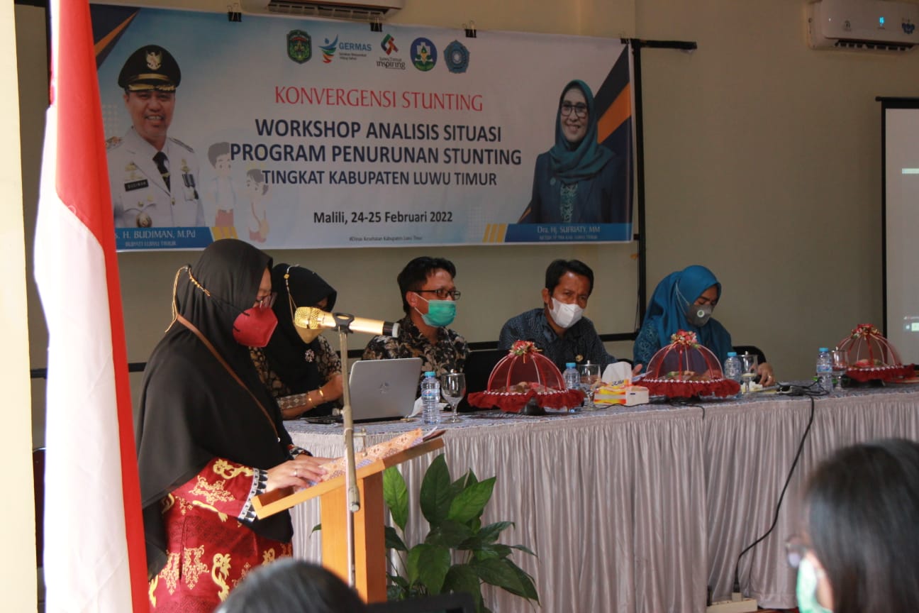 REPUBLIKNEWS.CO.ID, LUWU TIMUR- Dalam rangka mempercepat penurunan dan penanggulangan stunting di Kabupaten Luwu Timur, maka Dinas Kesehatan bekerjasama dengan Tim Percepatan Penurunan Stunting Lutim menggelar Workshop Analisis Situasi Program Penurunan Stunting Tingkat Kabupaten Luwu Timur, di Aula Hotel I Lagaligo, Malili, Kamis (24/02/2022).