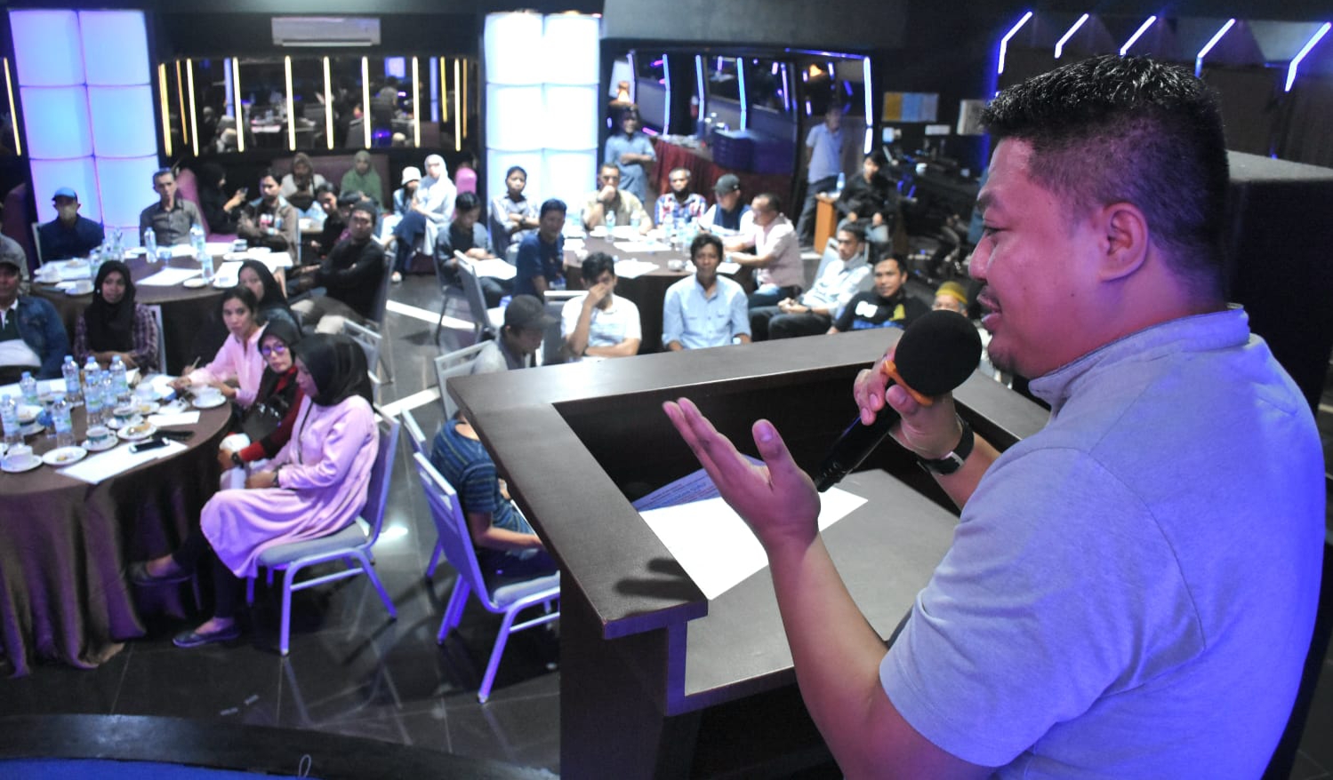 Narasumber sosialisasi, Ibrahim Wahid bercerita bahwa guru acapkali mendapat perlakuan yang tidak menyenangkan oleh orang tua siswa. Ia pun setuju dengan hadirnya perda ini.