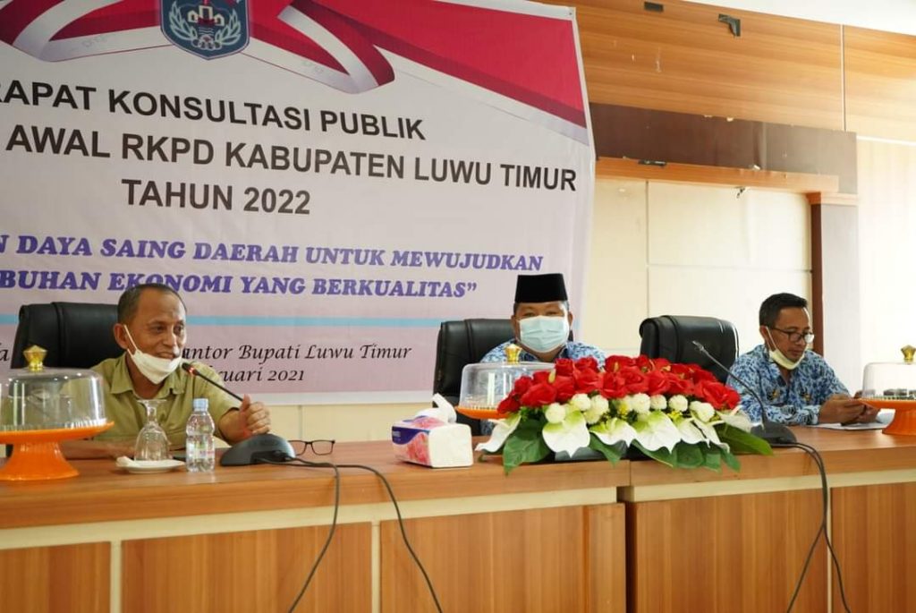 REPUBLIKNEWS.CO.ID, LUTIM – Pemerintah Kabupaten (Pemkab) Luwu Timur melalui Badan Perencanaan Pembangunan Penelitian dan Pengembangan Daerah (Bapelitbangda) menggelar rapat konsultasi publik rancangan awal Rencana Kerja Pemerintah Daerah (RKPD) Tahun 2022, di Aula Sasana Praja Kantor Bupati Luwu Timur, Rabu (17/02/2021).