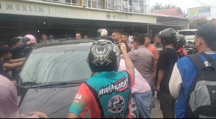 Peristiwa ini terjadi di Jalan Gatot Subroto di pelataran parkiran Toko Merlin depan Polsek Katobu, Kabupaten Muna, Sulawesi Tenggara (Sultra).