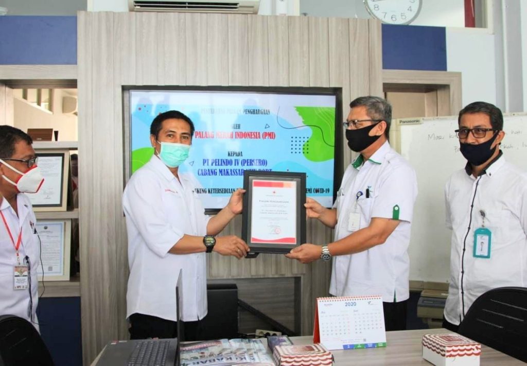 REPUBLIKNEWS.CO.ID, MAKASSAR – PMI Kota Makassar menyerahkan piagam penghargaan kepada PT. Pelindo IV (persero) cabang Makassar New Port (MNP) di Jl. Sultan Abdullah Raya, Kamis (09/07/2020).